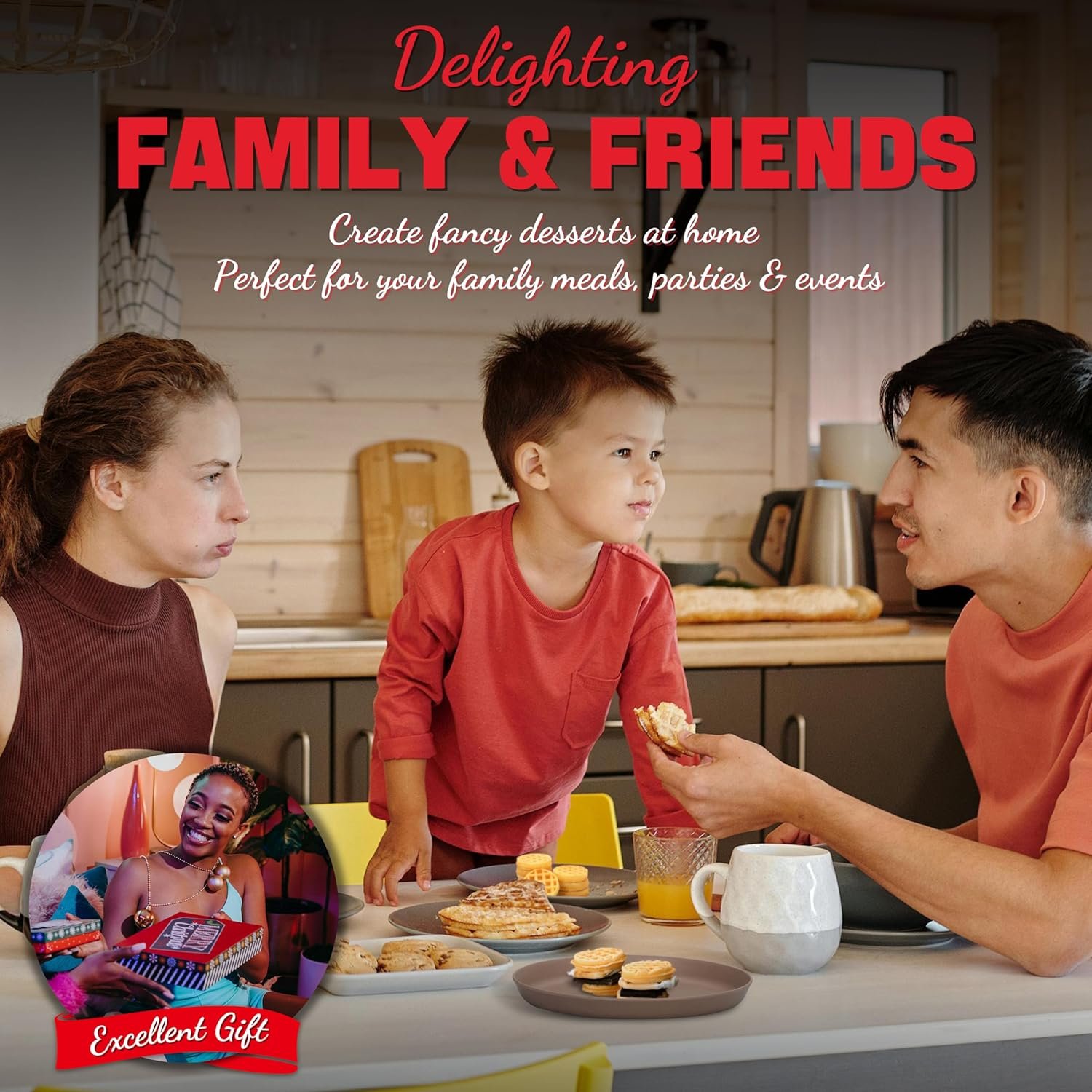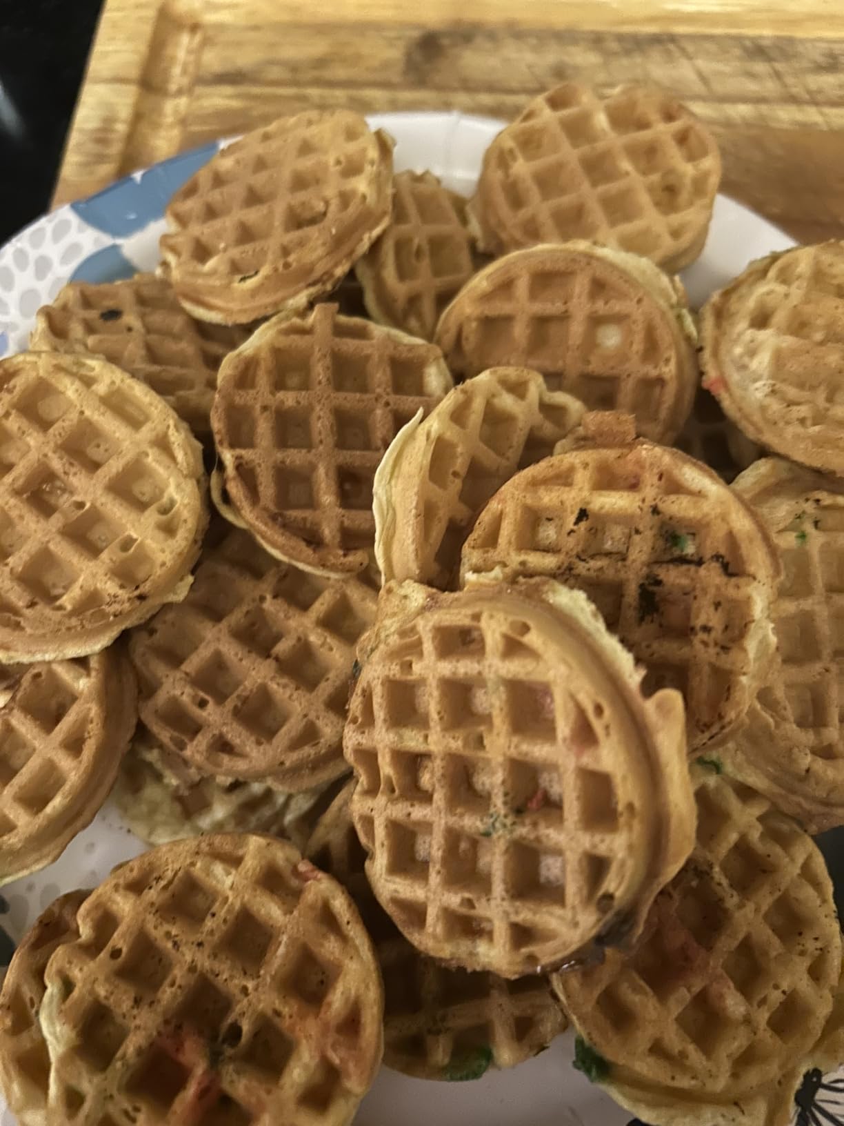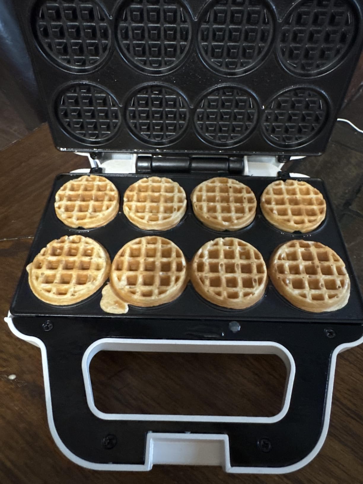 We've had a lot of fun with this product. Make a bunch of tiny waffles, rub them in/on some butter, dip them in syrup, then freeze any leftovers for later!