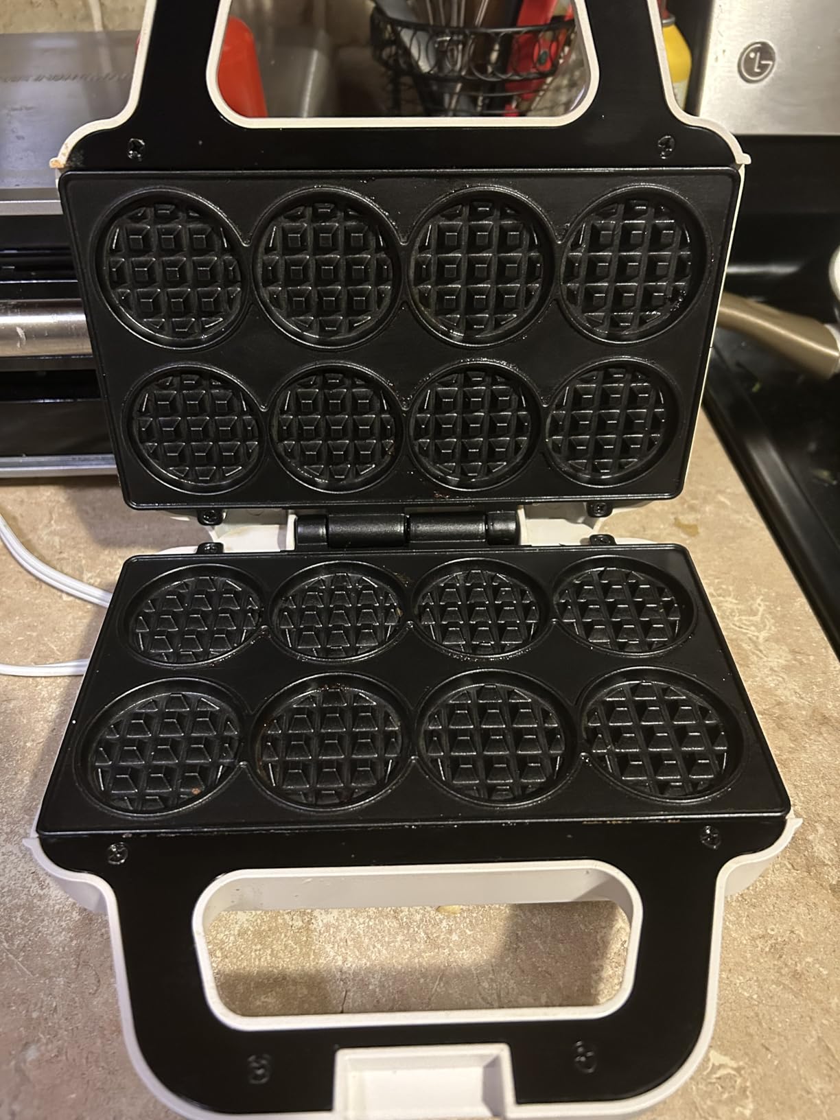 And my granddaughter loves it because the waffles are perfect for little people and she get to help her mother make them - and she is only allowed to help pour the batter with mom's supervision.