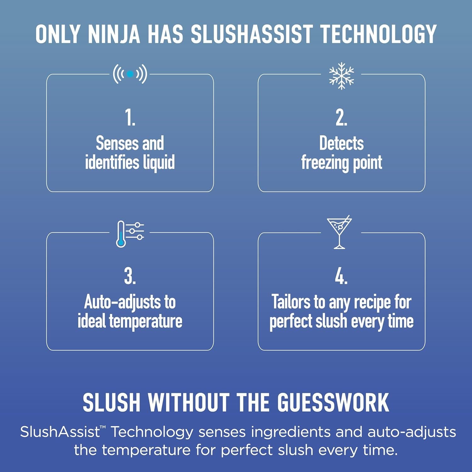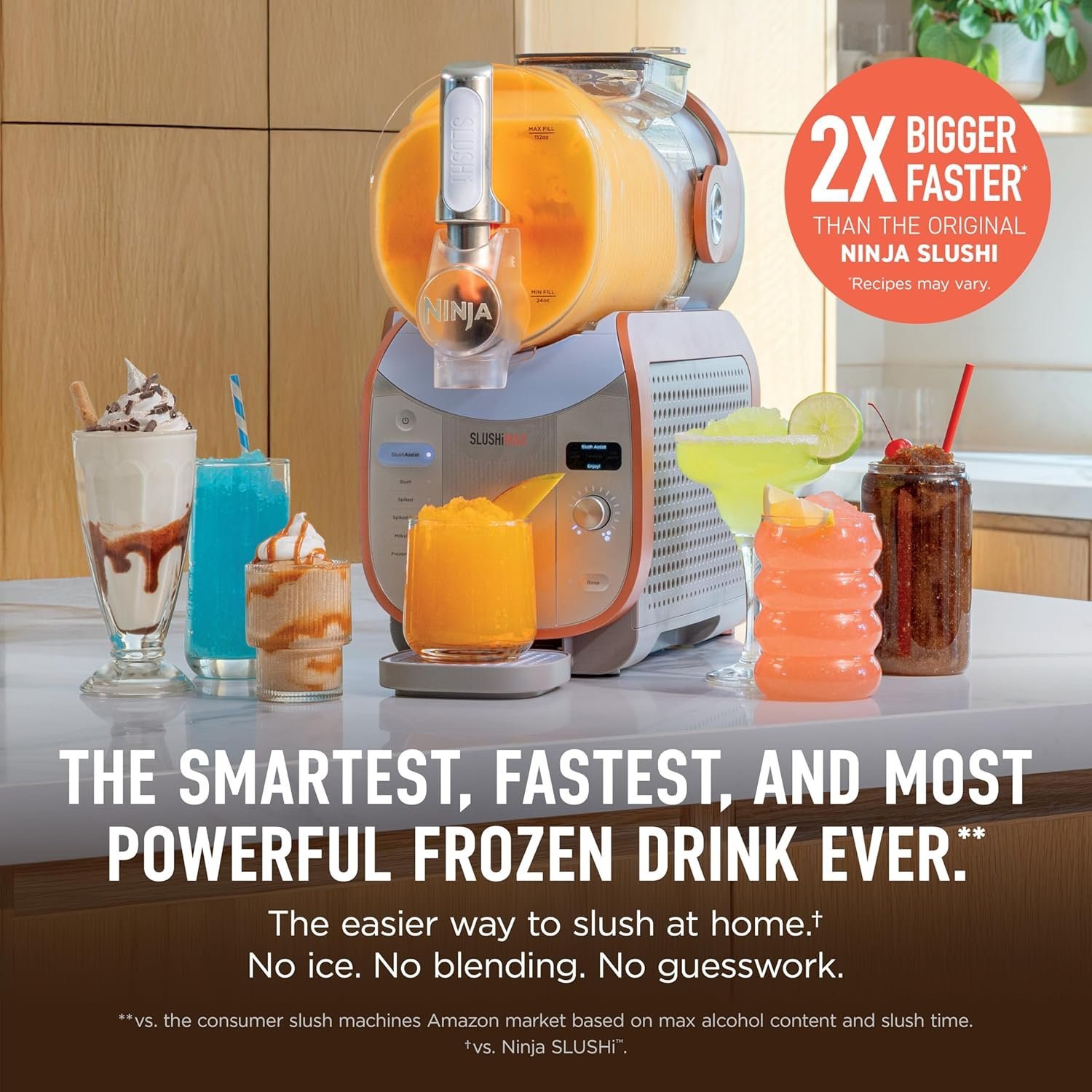 • THE SMARTEST, FASTEST, AND MOST POWERFUL FROZEN DRINK MAKER*. SLUSHi Max is 2X bigger & 2X faster** than the original Ninja SLUSHi®. Ninja’s exclusive SlushAssist Technology is your behind-the-scenes expert, sensing your liquid ingredients & auto-adjusting the temperature for perfect results without the guesswork. *vs. the consumer slush machines Amazon market based on max alcohol content and slush time. **Recipes may vary.