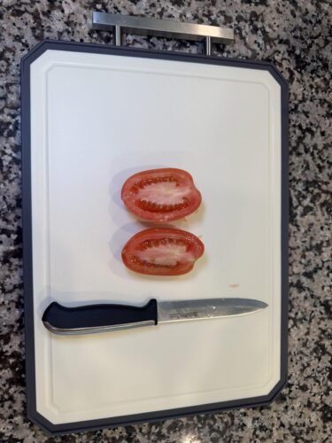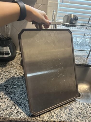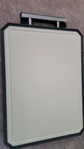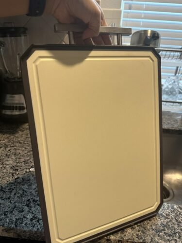 Cleaning is a breeze—I just toss it in the dishwasher. I also love the handle; it gives me a good grip when moving or washing the board and makes it easy to hang and store. Overall, it’s a smart, well-made product that makes food prep safer and cleaner. I use it every day and would definitely recommend it!