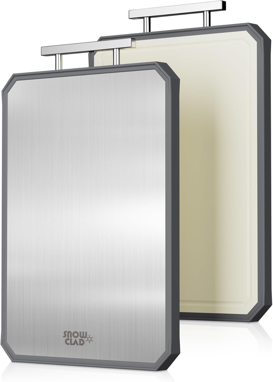 The SNOWCLAD Stainless Steel Cutting Board is durable, easy to clean, and perfect for both meats and veggies with its double-sided design. It’s non-to...More