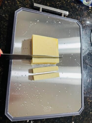 Definitely recommend it best cutting board I have had ever used. I love having the of double sided. The Grain side for fruits and veggies and the stainless steel side for meats. This has a nice silicone edge that helps it to grip the surface it’s placed on and is easy to clean and good things you can’t see cut-marks on board
