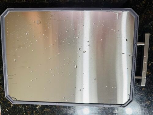 I'm really impressed with the quality of this stainless steel cutting board and the stainless steel handles make it convenient for use in the kitchen....More